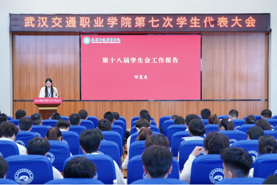 邢夏美同学代表学校第十八届学生会作题为《自强不息明志高远》的工作报告。报告总结了过去一年校学生会工作上取得的成果,并对今后的工作提出新的部署与要求。