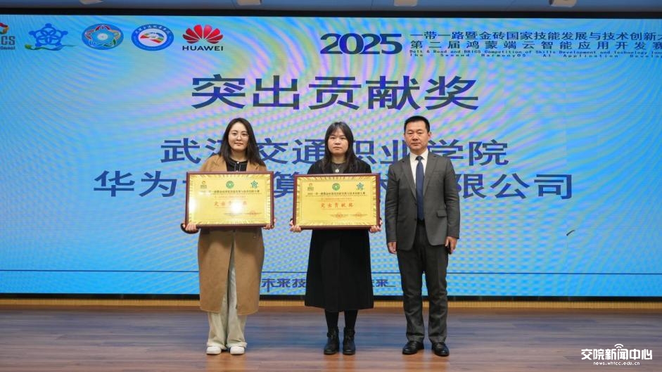 作为聚焦鸿蒙生态技术创新的国家级赛事,本次大赛展现了当代青年学子在端云智能应用开发领域的扎实功底与创新活力。经过激烈角逐,赛事最终评选出高职组一等奖 5 项、二等奖 10 项、三等奖 15 项、优秀奖 13 项;本科组一等奖 3 项、二等奖 7 项、三等奖 10 项、优秀奖 12 项。其中,我校荣获一等奖2项,三等奖1项。大数据技术专业雷惠萱、叶彤、付彤三名同学成功跻身国际赛区晋级名单。学校因在赛事组织、人才培养等方面的突出贡献,被授予“突出贡献奖”,这一荣誉既是对学校在鸿蒙生态人才培养工作的高度认可,也是对学校积极推动产教融合、校企合作的充分肯定。