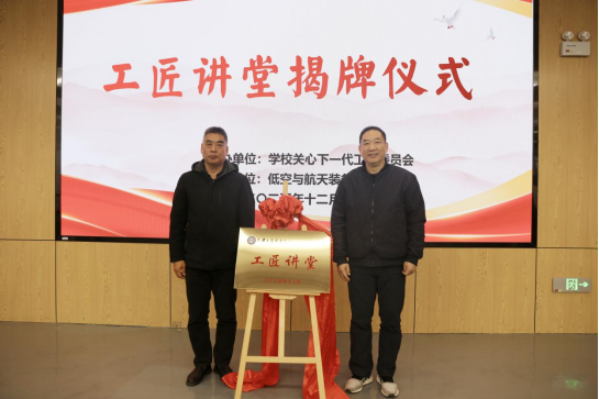 在“工匠讲堂”揭牌仪式上,校长周慎与邹峰大师共同为讲堂揭牌。周慎表示,邹峰大师的到来及“工匠讲堂”的设立,是我校深化产教融合、创新人才培养模式的重要举措。他代表学校感谢邹峰大师将宝贵的航天精神与工匠经验带入校园,并亲手将这份追求卓越的种子播撒到学子心间。他强调,学校将持续搭建高端平台,引入大师资源,致力培养更多适应新时代需求的知识型、技能型、创新型人才。