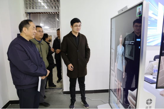 在参观实训室时,领导们重点考察了动捕与虚拍实训室和数字创意元宇宙实训室。周慎与AI数字人交互、观摩学生穿戴动捕设备进行表演,系统高精度地捕捉人体动作,实时将学生的动作驱动数字人角色,让在场人员能立即看到最终效果的雏形。在虚拍区,绿幕抠像“把现实人物放进虚拟世界”,实时引擎动态背景生成、实时摄像机追踪、实时抠像合成。在数字创意元宇宙区,钟辉和谢计红观摩了教师指导24级动漫设计的学生在数位屏上用压感笔进行贴图绘制任务,在简模的基础上,绘制出角色的色彩、光影关系、结构细节。通过学习这个技能,将在动画、游戏行业的三维角色建模岗位中承接手绘风格项目。除了贴图任务,学生还会学习模型制作、UV拆分和效果渲染。通过教师讲解,校领导了解到各专业不只培养学生单一的技能,而是都需要具备AI思维、数字资产思维、协同创作能力,才能更好地制作出高质量的虚拟产品和交互体验设计。