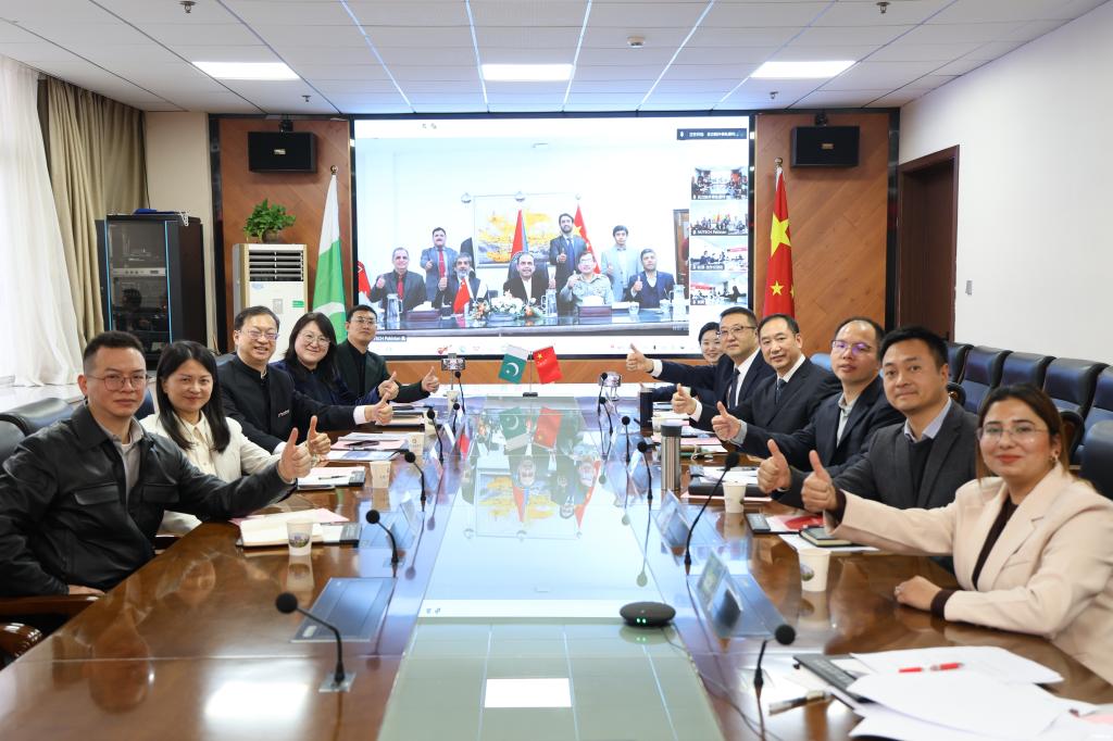 新闻网讯(通讯员 康玲)12月29日,武汉交通职业学院、巴基斯坦国家技术大学、北方天途航空技术发展(北京)有限公司、中巴产教合作卓越中心四方共建的“中巴低空经济工程技术学院”签约暨揭牌仪式在线上线下同步举行。中巴产教合作卓越中心中方主席李劲松、北方天途航空技术发展(北京)有限公司董事长兼深圳无人机协会副会长杨苡、校长周慎、外事处处长阮谦、无人机应用技术专业负责人朱一多、外事处副处长李爽线下参加仪式,巴基斯坦国家技术大学巴基斯坦国家技术大学校长莫阿扎姆·伊贾兹及巴方相关领导线上出席。仪式由副校长谢计红主持。