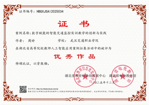 新闻网讯(通讯员 沈蕾)近日,教育部2025年教师人工智能应用案例征集活动结果公布,我校人工智能学院周婷老师作品《数字赋能的智能交通监控实训教学的创新与实践》入围培育案例。据悉,本次评选活动为推动人工智能技术在教育教学各环节各场景的深度应用与融合,发掘并推广具有创新性与实践价值的AI教学应用范例。湖北省共遴选出50件优秀案例参加教育部评审,16件最终入围,我校该案例获选。