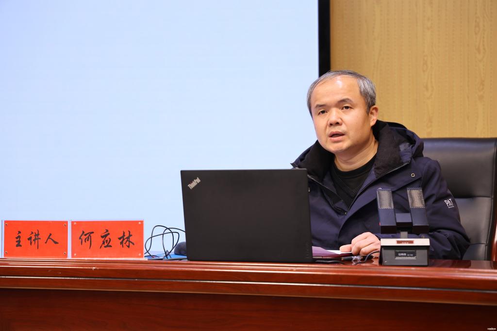 首场讲座特邀中共湖北省委党校王能应教授主讲。王能应教授深入解读了湖北省第十二届委员会第十一次全体会议精神,详细阐释了湖北省实现“十五五”目标的背景条件和完成“十五五”任务的战略举措,为学校对接区域发展需求、谋划自身规划提供了宏观视野和政策依据。王能应表示,贯彻落实“十五五”目标任务要坚决扛牢政治之责、全局之责、发展之责和为民之责,深刻把握“四期叠加”,紧紧锚定战略任务,坚持“高质量发展、高品质生活、高水平开放、高效能治理、高水平安全”的导向,鼓足干劲、奋发进取,久久为功、善作善成,为在长江经济带高质量发展中奋勇争先、加快建成中部地区崛起的重要战略支点、奋力谱写中国式现代化湖北篇章而努力奋斗。