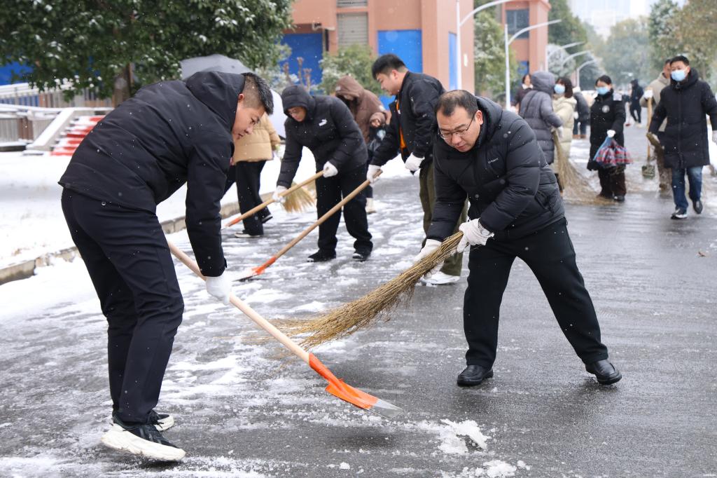 培训注重理论与实践相结合。1月16日上午,组织全体学员观摩了“湖北省高校党建研究会高等职业教育分会2025年年会”,在学习交流中汲取兄弟院校党建与业务融合的先进经验。培训班专门安排了“义务劳动”环节,学员们积极为会议室座椅统一更换椅套。面对雨雪天气,年轻干部培训班学员自发前往学校公租房区域开展铲雪除冰志愿服务,对主干道、步行道及楼前台阶、单元门通道等易滑区域逐一清理,有效保障了出行安全,用实际行动展现了年轻干部的服务意识与奉献精神。