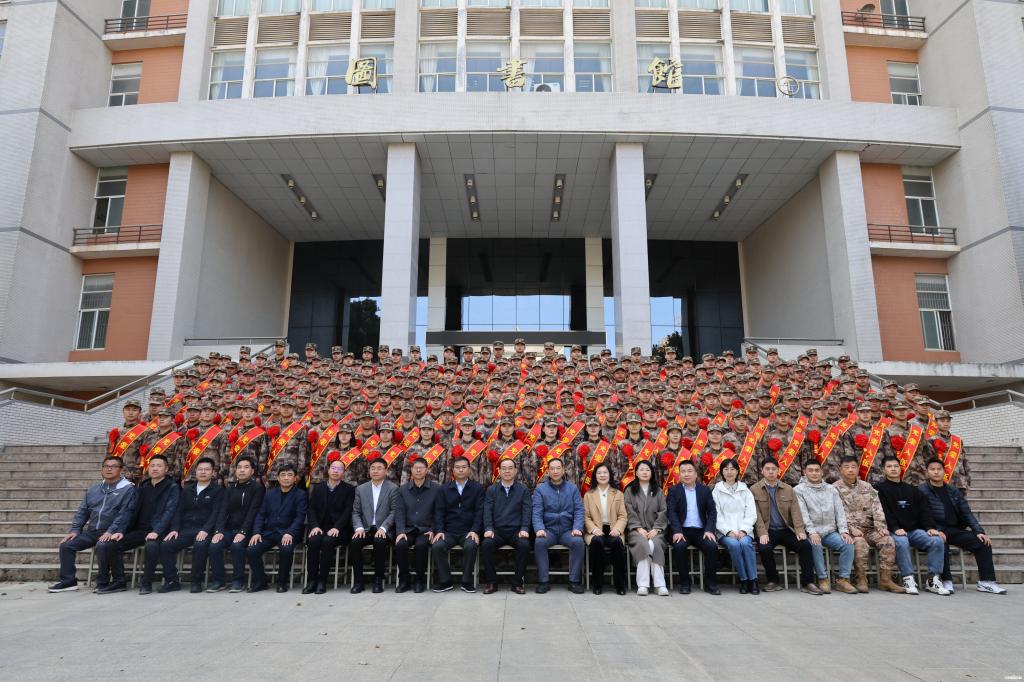 武汉市江岸区人民武装部上校政治委员吕春峰同志代表江岸区人民武装部,向光荣入伍的全体同学表示热烈的祝贺!他肯定了学校在军士生人才培养事业中的突出作用,勉励全体军士生自觉传承武汉这座英雄城市的红色基因,赓续精神血脉,坚定信念、脚踏实地,练就过硬本领,学着干、比着干、抢着干,扛起保家卫国的重任!