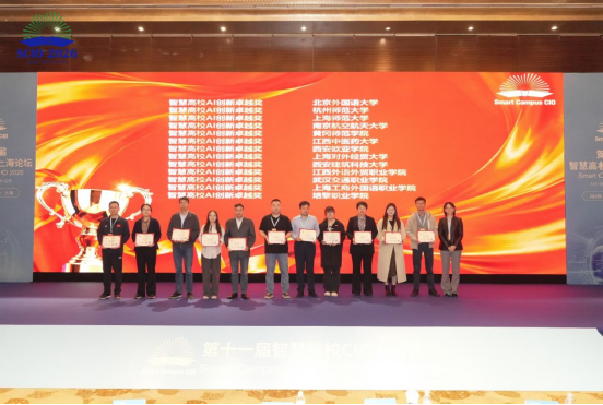 新闻网讯(通讯员 徐学平)4月10日,以“智启高等教育新征程”为主题的第十一届智慧高校 CIO 论坛在上海隆重举办。在论坛备受瞩目的“智慧高校创新成果评选”活动中,我校凭借人工智能与教育融合领域的探索应用和阶段性成效,获“智慧高校AI创新卓越奖”。