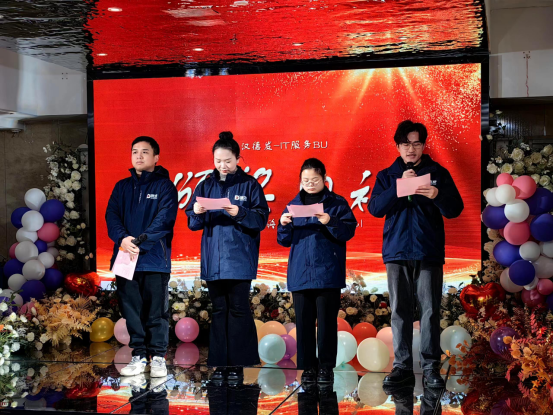 刘帅(右一)担任公司年会主持人