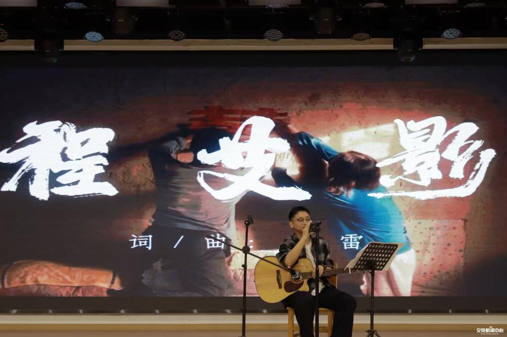 才艺展在新生辅导员原震老师的深情表演中拉开帷幕。原老师怀抱吉他,自弹自唱了一曲《程艾影》。他轻拨琴弦,悠扬的琴声与饱含情感的嗓音相得益彰,声声入耳,句句入心。歌声中不仅流淌着音乐的优美,更承载着对全体2025级新生的殷切期许与暖心关怀,瞬间拉近了师生距离,为晚会奠定了温暖的基调。