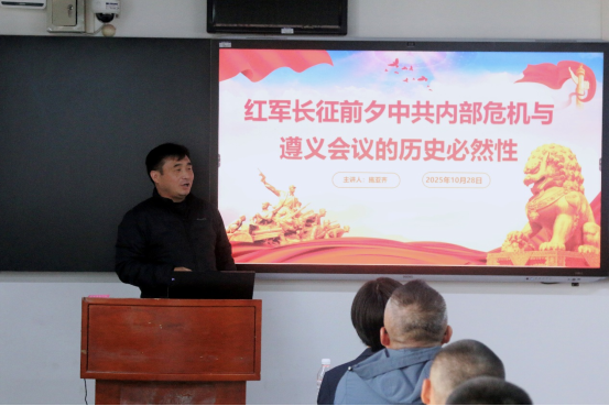 第一部分,周同宝老师以“从绝望到新生:历史为何选择中国共产党创建人民军队”为题,结合史料深刻剖析中国共产党创建人民军队的历史必然性;第二部分,陈飞老师聚焦建军之初的南昌起义、秋收起义、广州起义,系统梳理人民军队诞生初期的奋斗历程;第三部分,王勇老师阐述人民军队作为坚持和夺取抗战胜利中坚力量,展现军队在民族危亡时刻的使命担当;第四部分,袁宏斌老师围绕“抗美援朝保家卫国”展开,回顾志愿军英勇作战的艰辛历程与伟大精神;第五部分,唐吴磊老师以“雪域亮剑:1962年中印边境自卫反击战”为主题,再现人民军队保卫国家领土主权的铁血风采;第六部分,施亚齐院长深入分析“红军长征前夕中共内部危机与遵义会议的历史必然性”,为大家明晰这一重要历史阶段的核心脉络与历史决择。