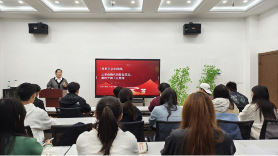 梅慧老师带领同学们回顾了从“红船精神”到“两弹一星” 精神、大庆精神的理想信念传承脉络,并深入阐释中国共产党人的精神谱系。梅老师强调:“正是‘红船精神’的开天辟地、“两弹一星” 精神的无私奉献、大庆精神的求实奋进,支撑中华民族重新屹立于世界民族之林,红色基因也在这一过程中深深植根于每位同学心中。”