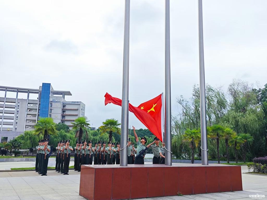 仪式在庄严的氛围中拉开帷幕。军士学院国旗护卫队迈着铿锵有力的步伐,护送国旗入场。伴随着雄壮的《义勇军进行曲》,鲜艳的五星红旗冉冉升起,全体师生肃立注目,齐声高唱国歌,深情表达对祖国的热爱与祝福。