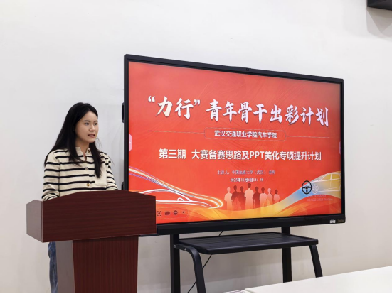 新闻网讯(记者 穆雨)11月4日,汽车学院“力行”青年骨干出彩计划(以下简称“出彩计划”)第三期在图书馆110学生社区团辅室成功开展。本期以“大赛备赛思路与PPT美化专项提升”为主题,特邀中国地质大学(武汉)博士研究生姜昕主讲,围绕赛事准备与展示表达两大核心能力,为学院入党积极分子和团学骨干带来一场实用的赋能培训。
