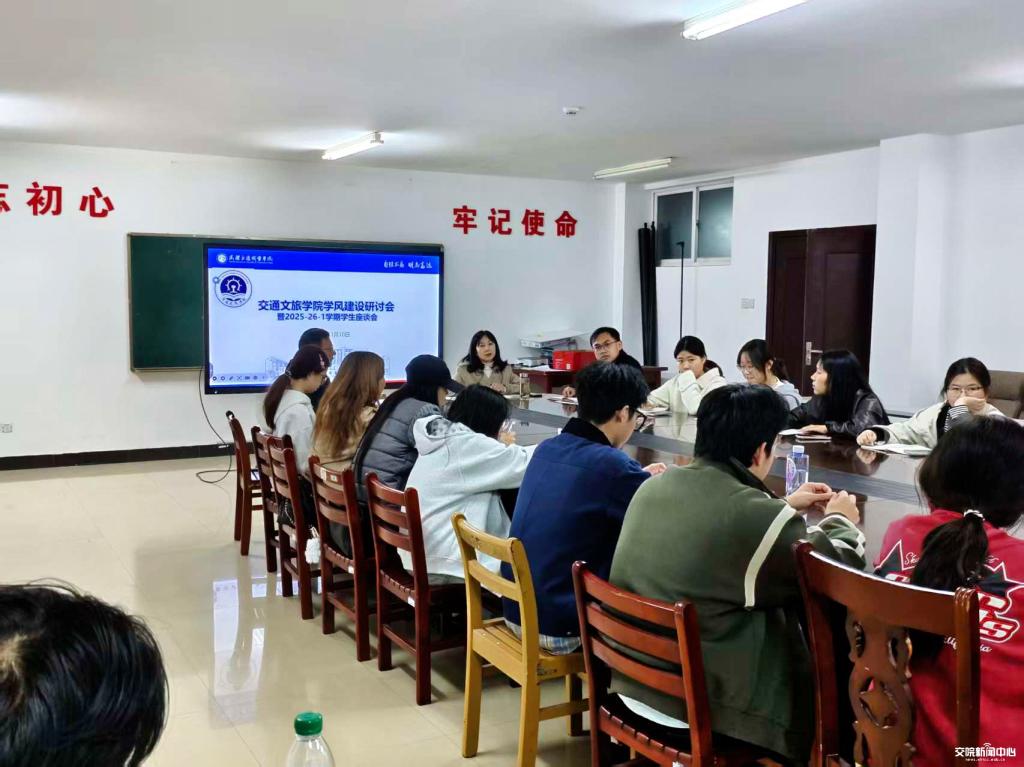 新闻网讯(通讯员 唐宁霞)为深入了解一线学情,扎实推进班风学风建设,11月10日晚,交通文旅学院在明德楼414教室组织召开师生座谈会。院长陈安慧、副院长陈顺良、团总支书记盛君凯与24、25届全体班级代表齐聚一堂,就当前班级学风现状、存在问题及改进措施进行了深入交流。