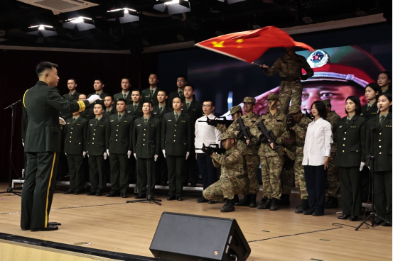 副歌声起,学员声浪逐级攀高。男声与女声交错叠进,气息贯通,仿佛涌动的浪潮向前推进,为经典旋律注入蓬勃的朝气。每一个节拍、每一声唱和,都仿若落地的誓言,将深厚的家国情怀化为可闻可感的韵律与力量。