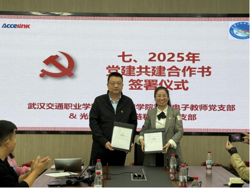 校企党支部还开展了“红色光纤”企业实践主题党日活动,就“红色工匠”培育工程及“红匠导师”队伍建设进行了深入探讨,双方签署了《党建共建协议书》。