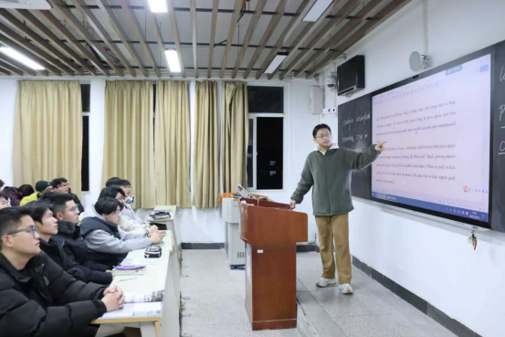 新闻网讯(记者 刘苒漪)学院“一站式”学生社区里,柔和的灯光照亮了夜晚。讲台上,一位年轻的辅导员正专注地讲解着英语长难句的破解技巧;台下,学生们频频点头,认真记录。每周三晚的这间活动室,已成为许多船海学子备考四六级的“充电站”。