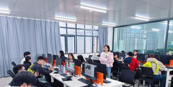 “账号定位要精准,不能盲目跟风,结合你们的专业优势做垂直领域,粉丝粘性才会高。”校内导师王然根据学生的账号数据分析表,耐心讲解账号运营思路,结合学生账号数据案例,拆解短视频流量密码;实训场景中,企业导师陈曼现场示范切片剪辑技巧,指导学生优化视频节奏与带货转化点。“双师”优势互补,让学生既能吃透运营理论,又能熟练掌握实战技巧,形成“理论学习——技能实操——精准提升”的完整培养链条。