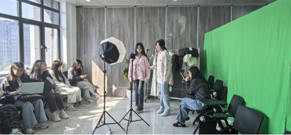 直播运营组的同学则分别化身主播、副播、场控、投手,在真实的视频号、抖音直播间直面消费者,从话术打磨、促销活动策划、逼单技巧到突发状况处理,全程实战历练。他们成功打造“秋冬焕新季”“轻通勤穿搭专场”等多场主题直播,其中为天门本土女装品牌策划的3小时专场直播,当场成交额突破3万元,观看人次超千人,赢得企业高度认可。