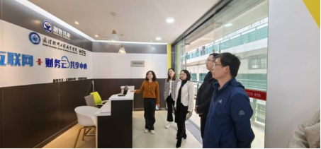 调研团队实地考察了武汉软件工程职业学院校内的融智共享互联网+财务云共享中心。该中心作为与正誉企业管理(广东)集团股份有限公司共建的产教融合实训基地,通过引企入校、真账实操的创新模式,实现了教学与产业需求的无缝对接,从而有效缩短学生从校园到职场的适应周期。