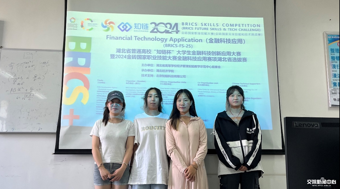新闻网讯(记者 叶以萌)近日,在2024年金砖国家职业技能大赛金融科技应用赛项区域选拔赛(湘鄂赛区)中,经济管理学院财富管理专业教师尚杨娇、魏婧指导熊梦雪、王盼盼、李颖、赵静怡四名同学,荣获团体第3名的优异成绩。
