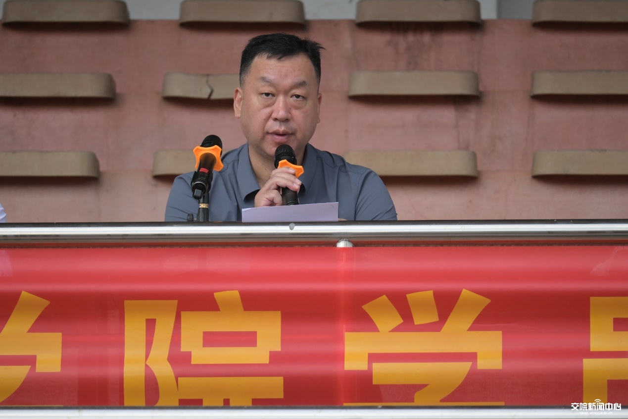 军士学院院长兼党支部书记张庆大讲话。他代表学院向2024级全体新生表示热烈的祝贺,对大家在训练场展现出的过硬作风给予充分肯定。他深情地说:“军装和军种标识,不仅仅是荣誉,也是对国家富强、民族复兴的责任,是对实现建军一百年奋斗目标的责任。”