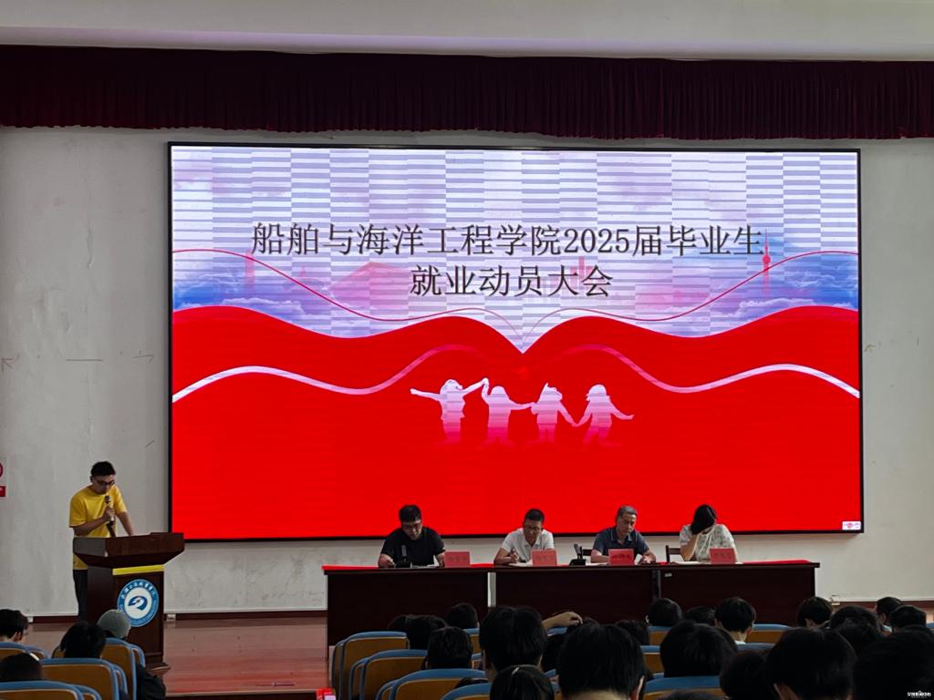 新闻网讯(记者 刘苒漪)9月6日,船舶与海洋工程学院于明德楼223报告厅召开了2025届毕业生就业动员大会。院长徐得志、党总支书记冯可可、副院长任晋宇、副院长黄黎慧出席动员大会。22级职业导师、毕业班辅导员及2025届全体毕业生参加会议,会议由副院长任晋宇主持。
