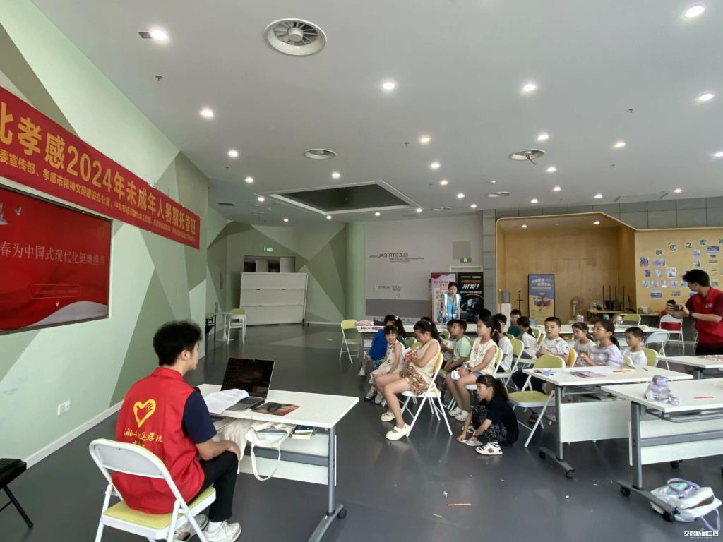 新闻网讯(通讯员 魏小双)赤日炎炎,蝉声阵阵,七月的骄阳下,武汉交通职业学院船舶与航运学院“红色赶考”志愿宣讲团满怀热忱地走进孝感暑假学堂,他们如同传递火种的使者,为可爱的小朋友们深情讲述西柏坡精神,促使这一伟大精神在孩子们的心田里落地生根、发芽开花。据悉,由共青团孝感市委牵头主办的2024 年未成年人暑期托管班,致力于为孩子们营造一个丰富而有意义的假期。宣讲团的到来,无疑是这个假期中最亮丽的风景。