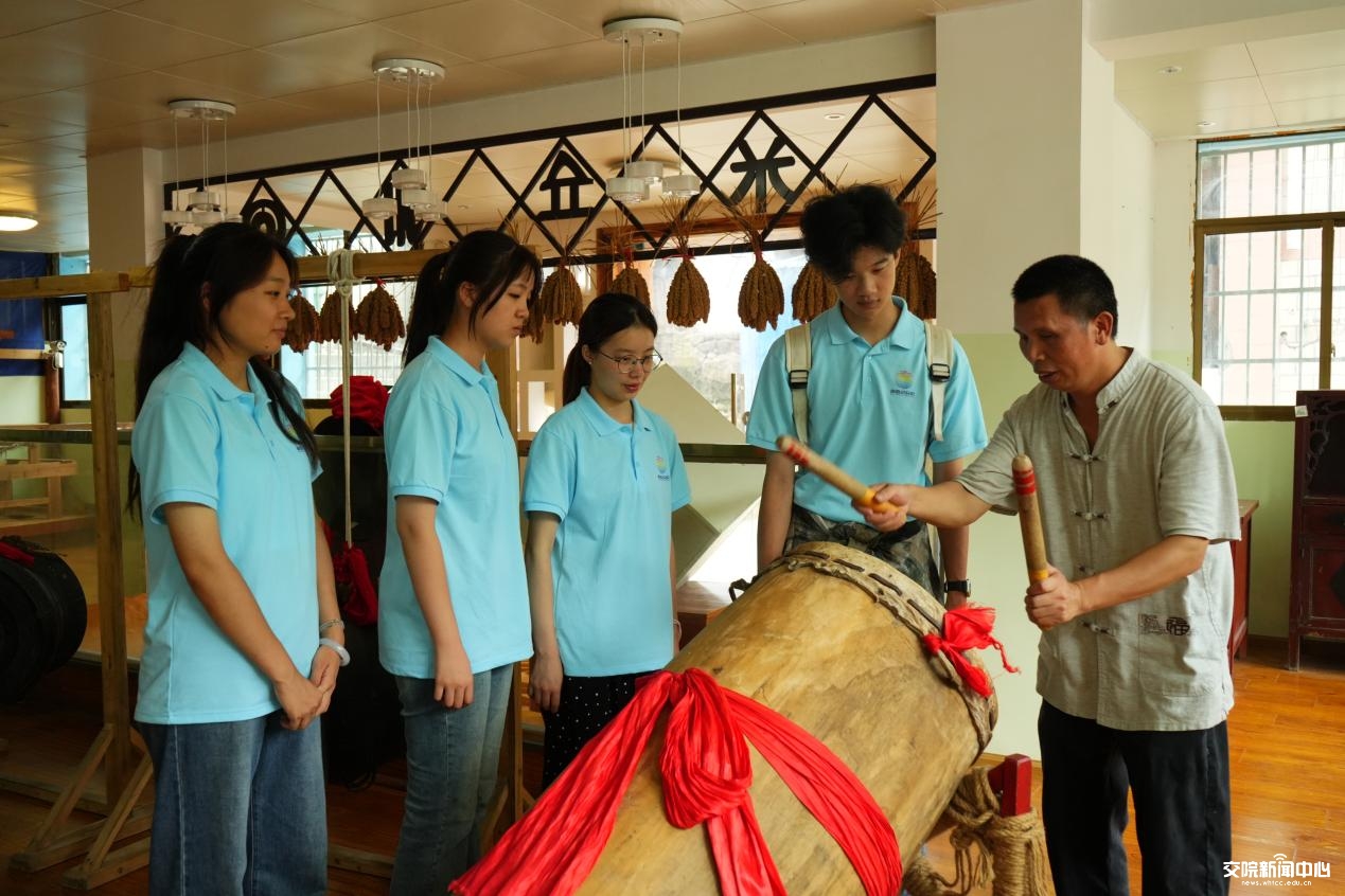阳和小学地处都匀水族文化发源地潘硐村。近年来,学校立足本地优秀民族文化,将水书、水族“夺咚”、水族剪纸等优秀传统文化引入校园。实践团在学校老师的带领下欣赏了由当地水族群众和学生共同制作的水书字画、水族服饰、水族乐器等非遗作品,体验了富有水族特色的民族乐器“夺咚”,共同演奏了一段民族团结的和谐之歌。
