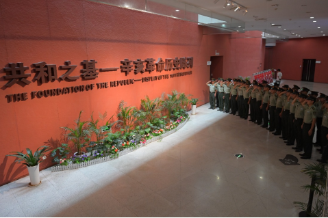 “共和”之基的革命纪念墙,静静地矗立在会馆中央,似乎在低声诉说着那段峥嵘岁月中的英勇与牺牲。全体学员庄严敬礼,向革命先烈表达了最崇高的敬意。