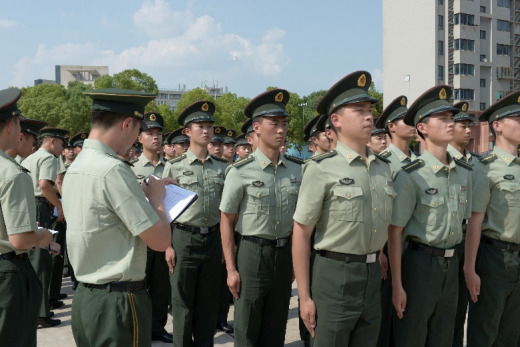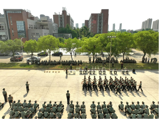 烈日下,学员们军姿挺拔,帽檐下汗滴滑落、掠过颊边、湿透衣襟,热浪扑面,丝毫不能撼动军士生那如炬的眼神。任时间流动,队员们始终精神抖擞,整齐划一的动作吸引着全体观摩人员的目光,一阵阵热烈的掌声响彻训练场。