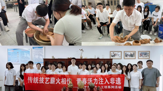 在实训楼207陶艺室,技能大师省级技术能手何晓胜给大家带了一场“匠心律器——陶瓷艺术创作”精彩讲座。在何大师有趣的陶瓷艺术创作课上,不仅讲授了陶瓷创作的种类,让学生了解了陶瓷的发展历史,更是结合了高校学生特点,示范了生动有趣的陶艺拉坯课程,让学生直观感受手捏成型和拉坯成型以及在施釉时用笔的干湿浓淡与笔墨气韵。在何大师手中,寥寥数笔,梅、兰、竹、菊跃然于瓷器上,精彩绝伦。同学们也在何大师的指导下自己动手,领略了中国陶瓷艺术的独特韵味。