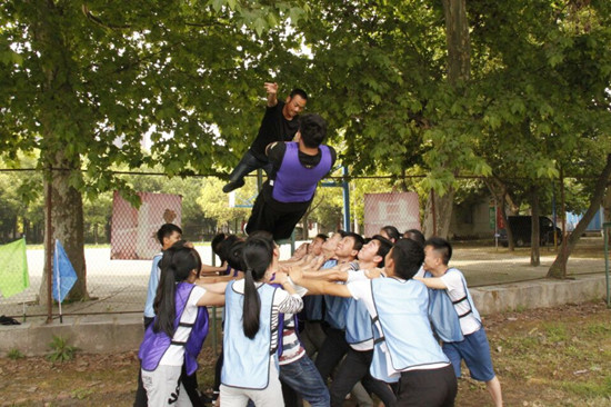 同学们在完成“团队破冰”后被基地教官分为四个小组,每个小组推选出队长并为团队取队名、定队歌。“心随鼓动”训练了同学们的团队合作能力,让大家明白团队合作的重要性;“信任背摔”让大家学会了相互信任与换位思考;“急速60秒”、“高空抓杠”、“翻越毕业墙”等项目则大大增强了团队的凝聚力,让大家在实际的项目中体会到了团队协作、民主协商和科学统筹的重要性。