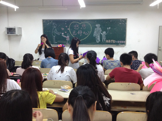 (张丽曼)母亲节将至,旅商学院心理健康部5月6日在学院各晚自习教室开展了“迎母亲节•DIY康乃馨传递祝福”活动。
