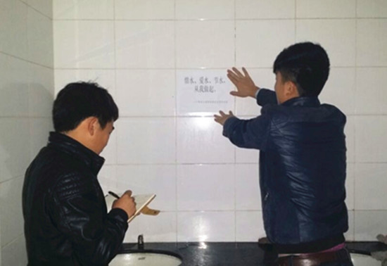活动中,同学们利用休息时间走访各个宿舍楼以及教学楼,清查楼道和洗手间有故障的水龙头,简单问题就自己解决,不能的就记录在册,汇总后报给学校有关部门解决;在楼层卫生间贴上节约用水的标识,提醒同学们珍惜水资源;并开展了节约水资源有关宣传活动号召同学们为节约用水奉献自己的一份力量。