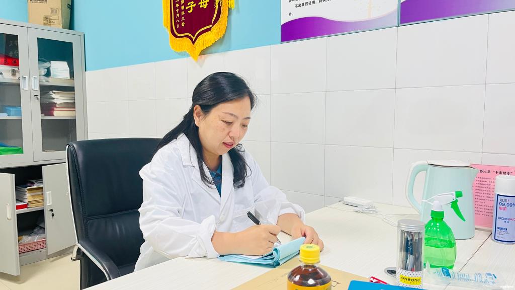 身穿白大褂,长长黑黑的头发简单地挽在脑后,脸上挂着浅浅的笑容,学校总务处公共卫生中心的胡滨医生说起话来声音总是温温柔柔的。