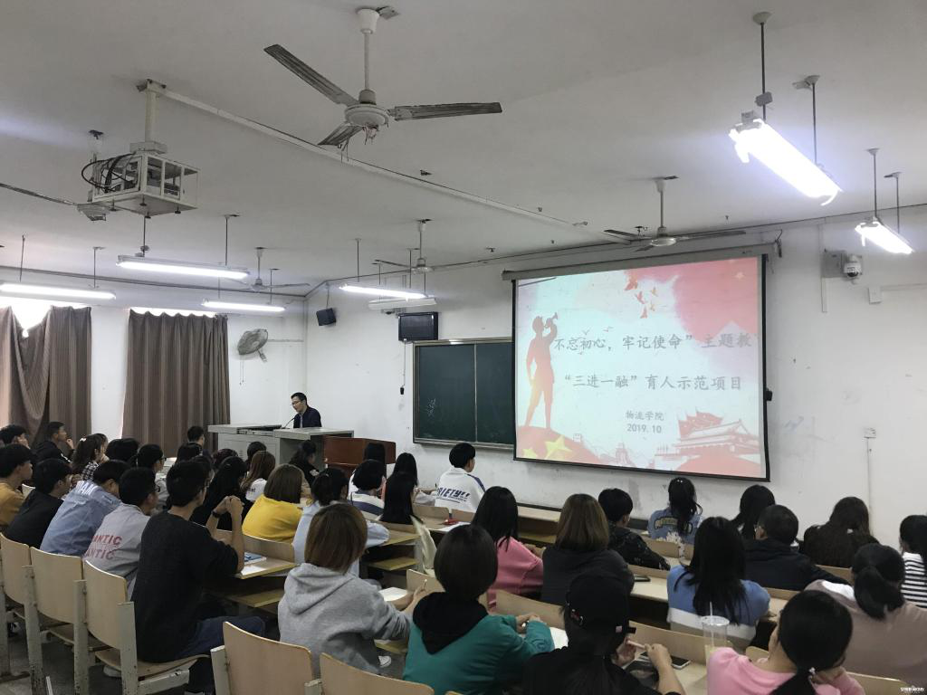 10月25日下午,物流学院在教学楼南楼201教室开展“不忘初心,牢记使命”主题教育暨“三进一融”育人示范项目展示。教务处刘浩处长莅临活动现场并担任主讲人,19级学生代表参加此次讲座。