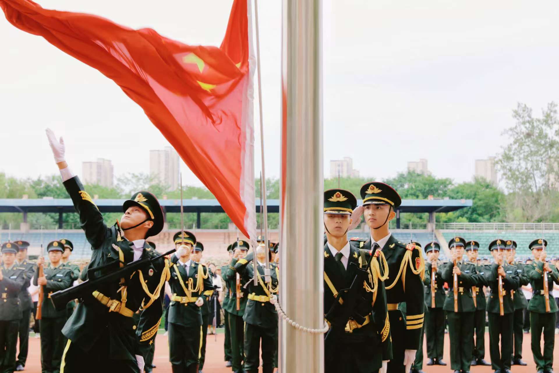 7点30分,国旗班队员护卫国旗入场,全体师生高唱国歌,五星红旗冉冉升起。马克思主义学院教师鲁梦洁在国旗下讲授思政课,她深情回顾了中华儿女英勇抗争的历史事迹,号召青年传承抗战精神,砥砺报国之志。随后,全体师生为抗战先烈和遇难同胞默哀,学生代表进行了慷慨激昂的诗朗诵。