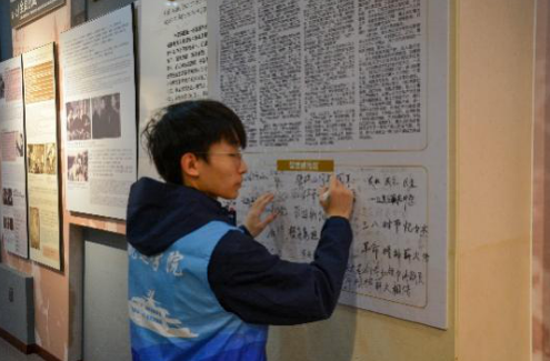 入党积极分子们来到纪念馆内的留言板前,写下自己的感悟与誓言。一句句“传承英烈精神,争做时代先锋”“以青春之我,担强国之任”的留言,既是对革命先烈的致敬,也是新时代青年践行初心使命的坚定表态。笔墨间饱含着青年学子对革命先辈的崇敬之情,更彰显了他们赓续红色血脉、勇担时代重任的决心。