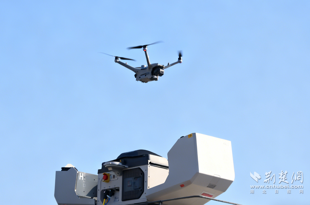 荆楚网(湖北日报网)讯(记者齐一璇 通讯员余雨龙)近日,在武汉交通职业学院尚能楼楼顶,一架无人机从自动打开的浅灰色方形机巢中平稳起飞。随后,这台无人机开始对校园及周边区域展开自主巡检,任务完成后,精准返回“巢”内。