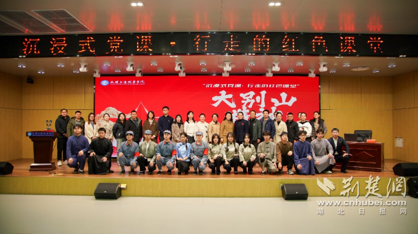 这并非专业历史剧演出,而是武汉交通职业学院交通文旅学院“沉浸式党课·行走的红色课堂”首期课程“红旗漫卷大别山”的真实场景。