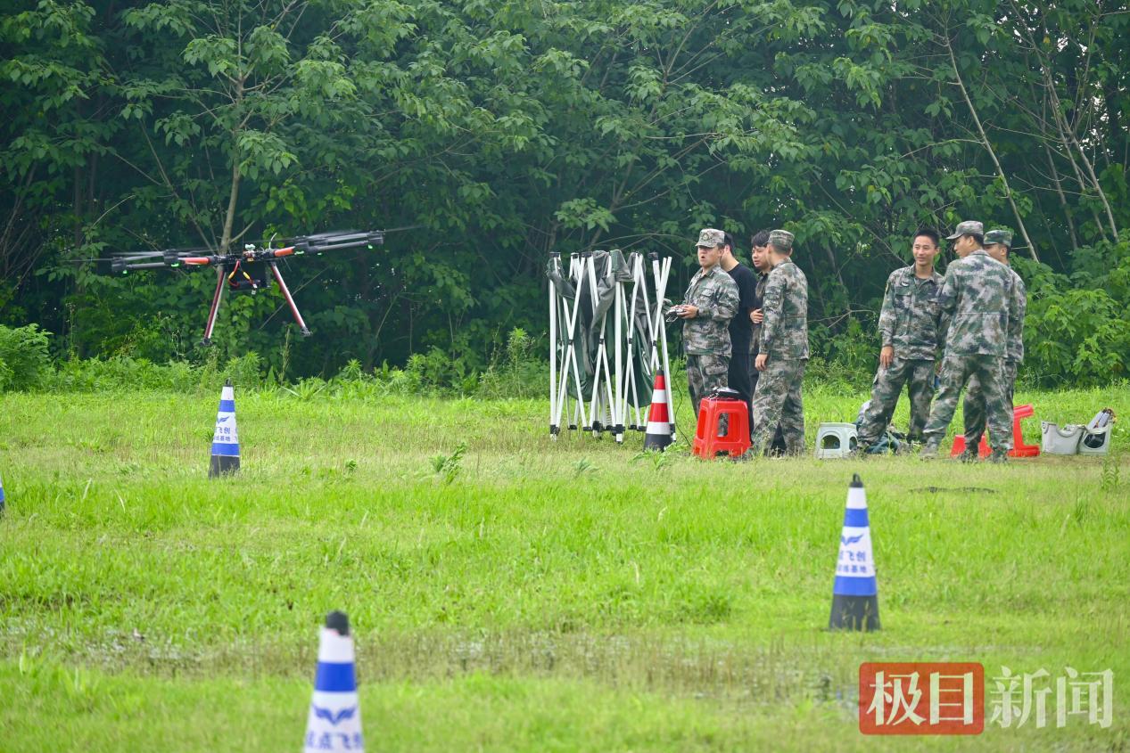 “以前我们练习都是通过无人机的飞行状态来进行抛投,今天不同的地方在于我们要观察屏幕来进行物品的投送”学生说。地面的三脚架上放着一块屏幕,连接着无人机的摄像头。