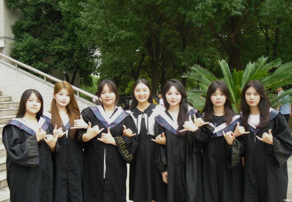 周婷老师(中)与毕业生合影留念