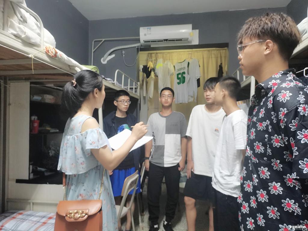 周婷老师(左一)深入学生寝室