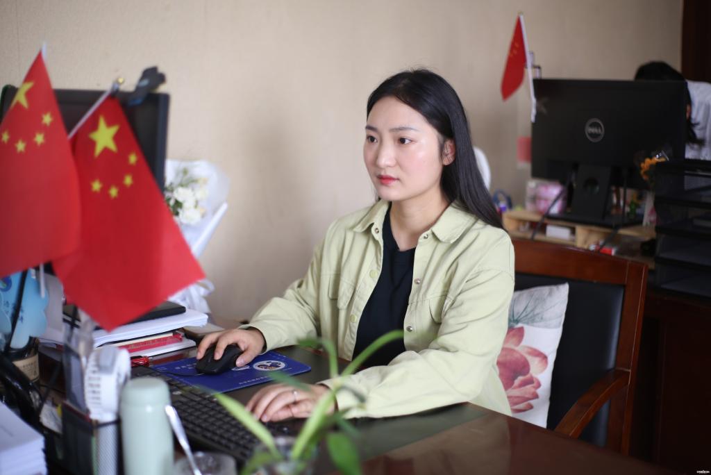 周婷老师在办公室工作