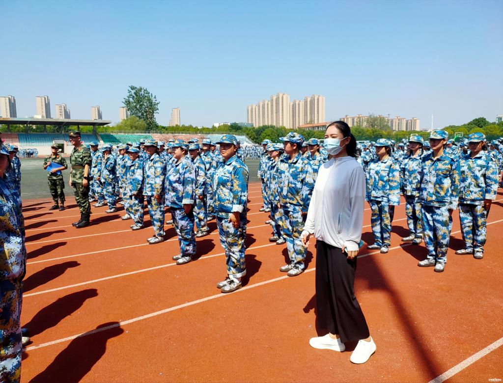 周婷老师在军训场上带训