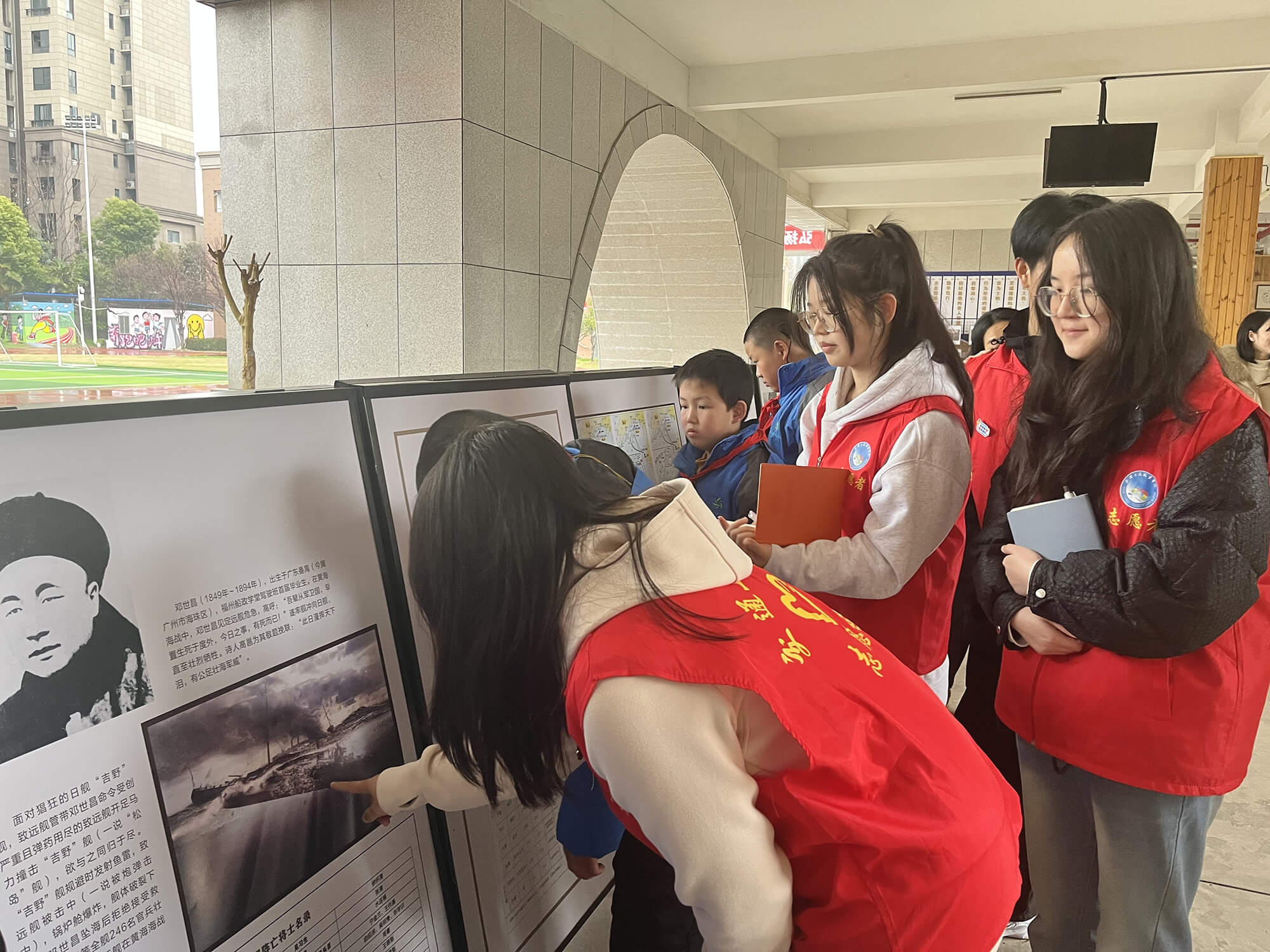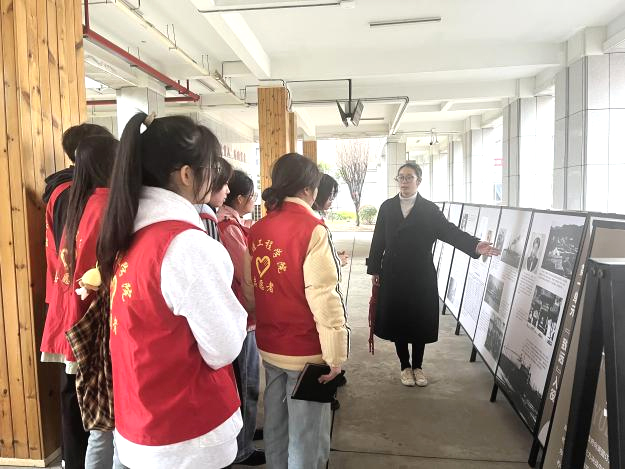 活动当天,武汉市中山舰博物馆正在校园内举办“圆梦深蓝”中山舰纪念展。第三学生党支部的学生党员提前深入了解展览内容,在参观过程中,耐心细致地引导听障学生们通过图片与文字,感受那段波澜壮阔的历史,在他们心中种下爱国主义的种子。