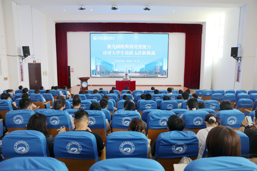 副校长钟辉授课的主题是“提升网络舆情处理能力,应对大学生思政工作新挑战”,授课从怎样认识当前的思政工作、怎样做好思政工作、当前网络舆情的特点、怎样正确应对网络舆情四个方面展开。副校长钟辉表示,作为大学生思想政治教育工作者,要围绕学生、关照学生、服务学生,掌握思政工作的新格局,把握当代青年的新特征,落实思政工作的新要求。副校长钟辉指出,要从四个方面做好大学生思想政治教育工作:一是提升自身高度,自觉增强政治理论素养;二是挖掘自身深度,重视业务技能水平提升;三是拓展自身广度,形成各方协同育人合力;四是提高自身温度,用心用情关心关爱学生。