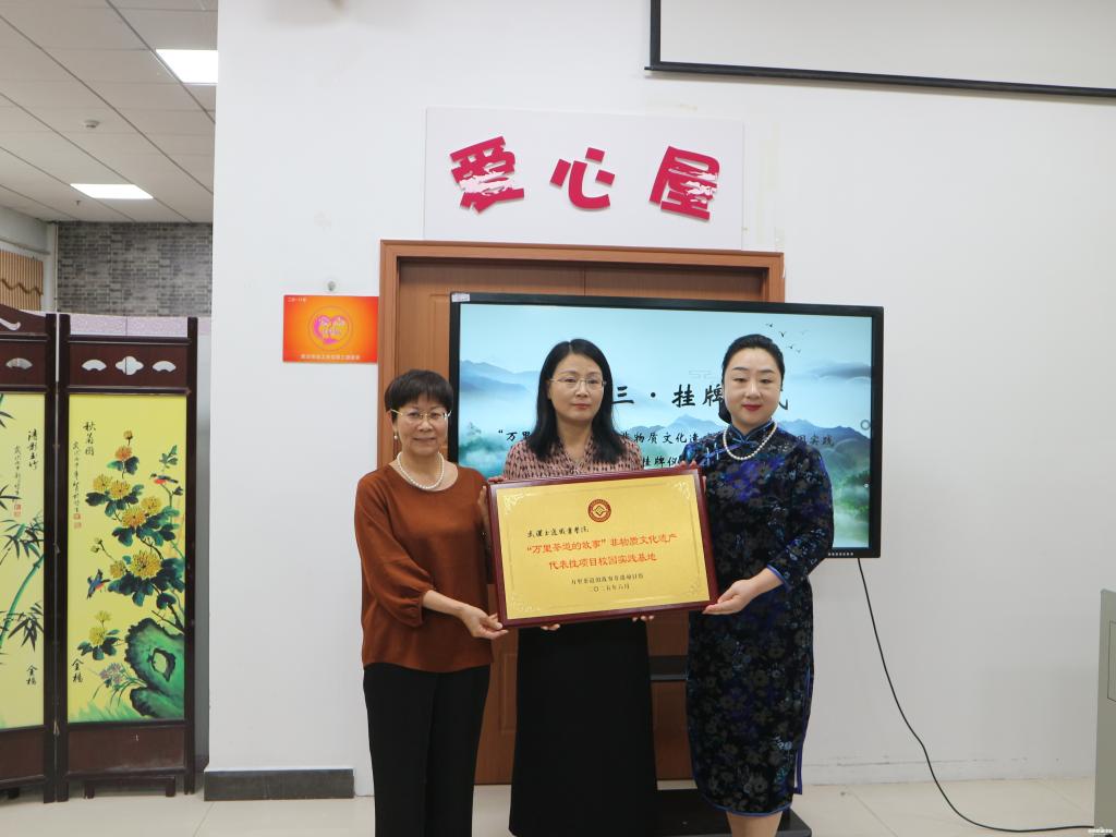 在热烈的掌声中,副校长胡琴、鄢向荣教授、马晓丹老师共同为基地授牌。这一仪式标志着“万里茶道的故事”非遗项目正式扎根校园,未来将通过“非遗大师工作室”“茶文化体验中心”“国际茶文化交流周”等载体,推动茶文化进课堂、进社团、进社区,助力非遗保护与职业教育深度融合。