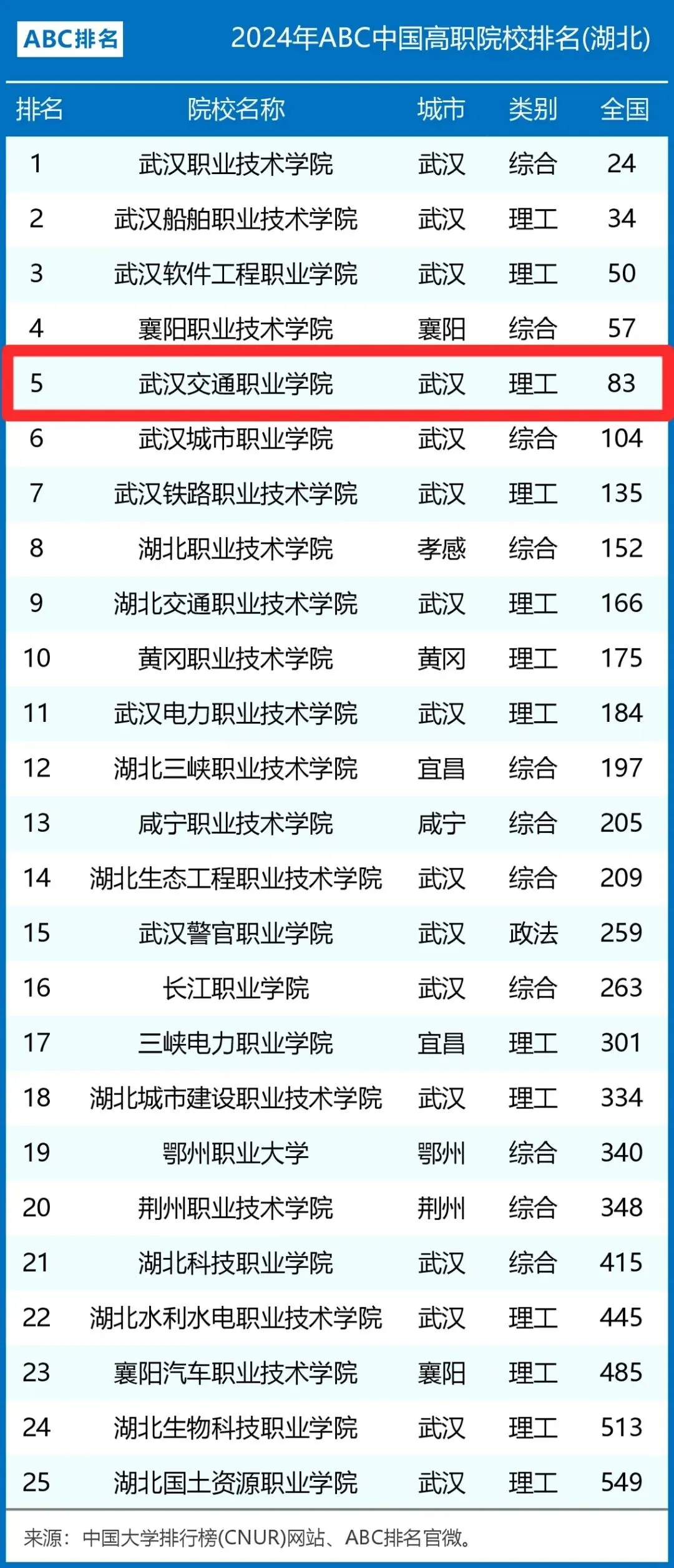5.全国第83,湖北省第5,学校排名再创历史新高