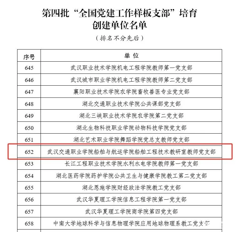 2.我校船舶工程技术教研室教师党支部入选“全国党建工作样板支部”培育创建单位